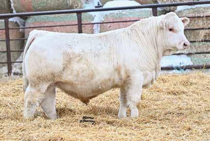 Performance and style with great weaning and yearling weights in this Three Thieves son! He ranks 2nd in our Charolais bulls in both weaning and yearling weights. Kissinger has caught the attention of many visitors to the bull pen. He is powerful, smooth made, long bodied, hairy with that great herd bull presence. His dam is a powerful and beautiful Symbol x Esperenza female that has caught the eye of many people touring our pastures. This is her 3rd bull for the bull sale. She looks like the type of cow that should successfully keep on producing top end bulls for the bull sale. She’s moderate made but big, tanky and powerful.
