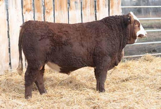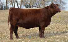 with a great look. Square build, strong top and a great rib shape. His fullblood mother raised this bull calf this year at 14 years of age! She is the foundation cow to most of our red program leaving us with multiple females that were retained over the years. Given the cows age her milk production has started to decline which lead to a smaller WW then she usually gives us. Typically she raises our heavyweight calves year after year. So rest assured the genetics are there to raise some high performing calves.