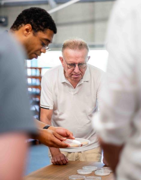 with visiting high school students