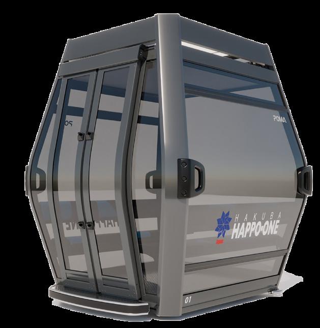 The new EVO cabins, a first for Japan, will carry up to ten passengers in enclosed, panoramic compartments, offering improved comfort, faster travel speeds, and enhanced wind resistance. The upgraded system will increase capacity from 1,350 to 2,400 passengers per hour.