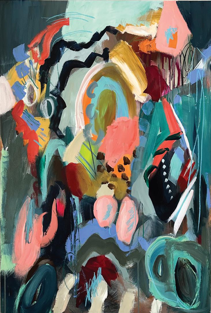 Kelly Russo’s intuitive abstract paintings are bright and dynamic. A mother of four and artist, her paintings depict a balance of color, shape, and action that symbolize the organized chaos of daily life.