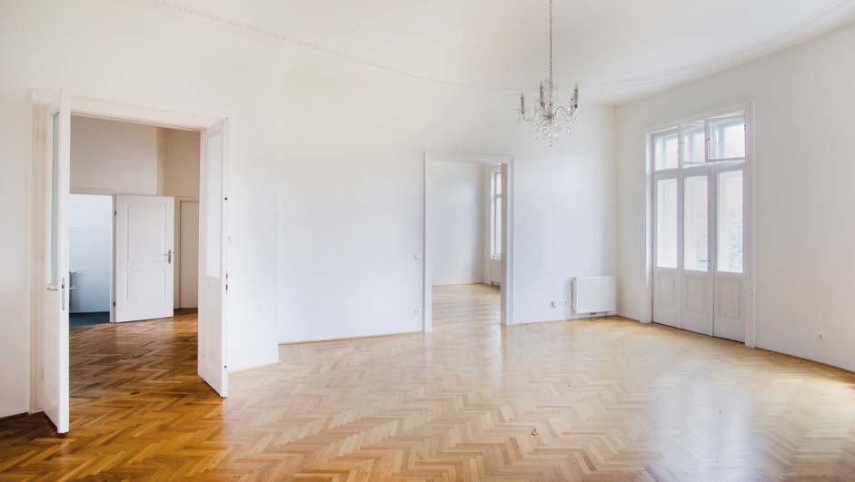 Die ca. 228 m² große Fünfzimmer-Altbauwohnung befindet sich im 3. Obergeschoss und bietet einen Blick auf einen privaten Park mit altem Baumbestand. Sie zeichnet sich durch einen klassischen Grundriss und beeindruckende Altbau-Raumhöhen von 3,65 m aus, die ein unvergleichliches Wohlfühlambiente schaffen. Das Raumprogramm umfasst einen Ecksalon, vier Schlafzimmer, zwei Badezimmer, eine große Wohnküche und Nebenräume. Die sonnige Ausrichtung sorgt für viel natürliches Licht. Auf Wunsch kann die Wohnung auch im voll sanierten Zustand erworben werden.