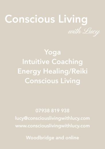 l Contact lucy@consciouslivingwithlucy.com or call, 07938 819938. Visit, consciouslivingwithlucy.com