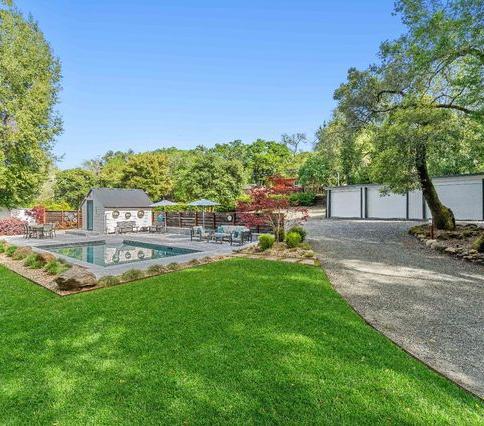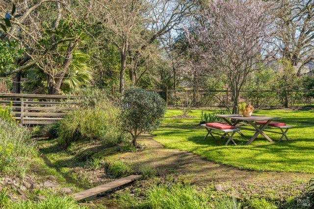 Nestled in historic Glen Ellen where the Sonoma and Graham creeks converge, lies an outdoor entertaining paradise known as the Confluence Enchanting trees, a hobby Syrah vineyard, raised garden beds, fruit trees and beautiful, mature landscape encompass this 1+- acre property creating a parklike setting surrounded by nature The Confluence offers a remodeled home, detached studio and 3-car garage with EV charging and workshop. The enclave is fully fenced with an automatic gate for added privacy and security. The remodeled 1bd/1.5ba home enjoys serene views and room for guests with a bonus room, office and detached studio. Natural light fills open living spaces providing picturesque outlooks. The primary suite boasts an oversized closet and a private bathroom. Stepping outdoors, luxurious Turkish marble patios enhance the home and sparkling pool; a short stroll leads to the lighted bocce court with authentic oyster shell finish for some fun-filled competition. The state-of-the-art 5-bedroom septic system and additionally installed infrastructure presents a golden opportunity to