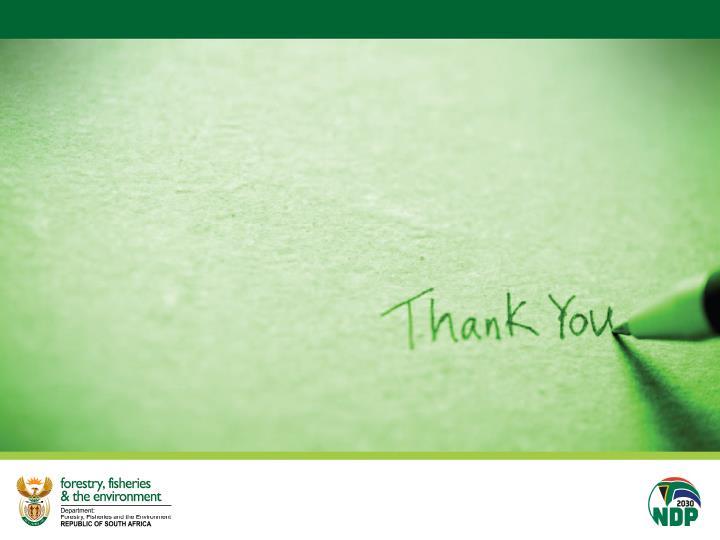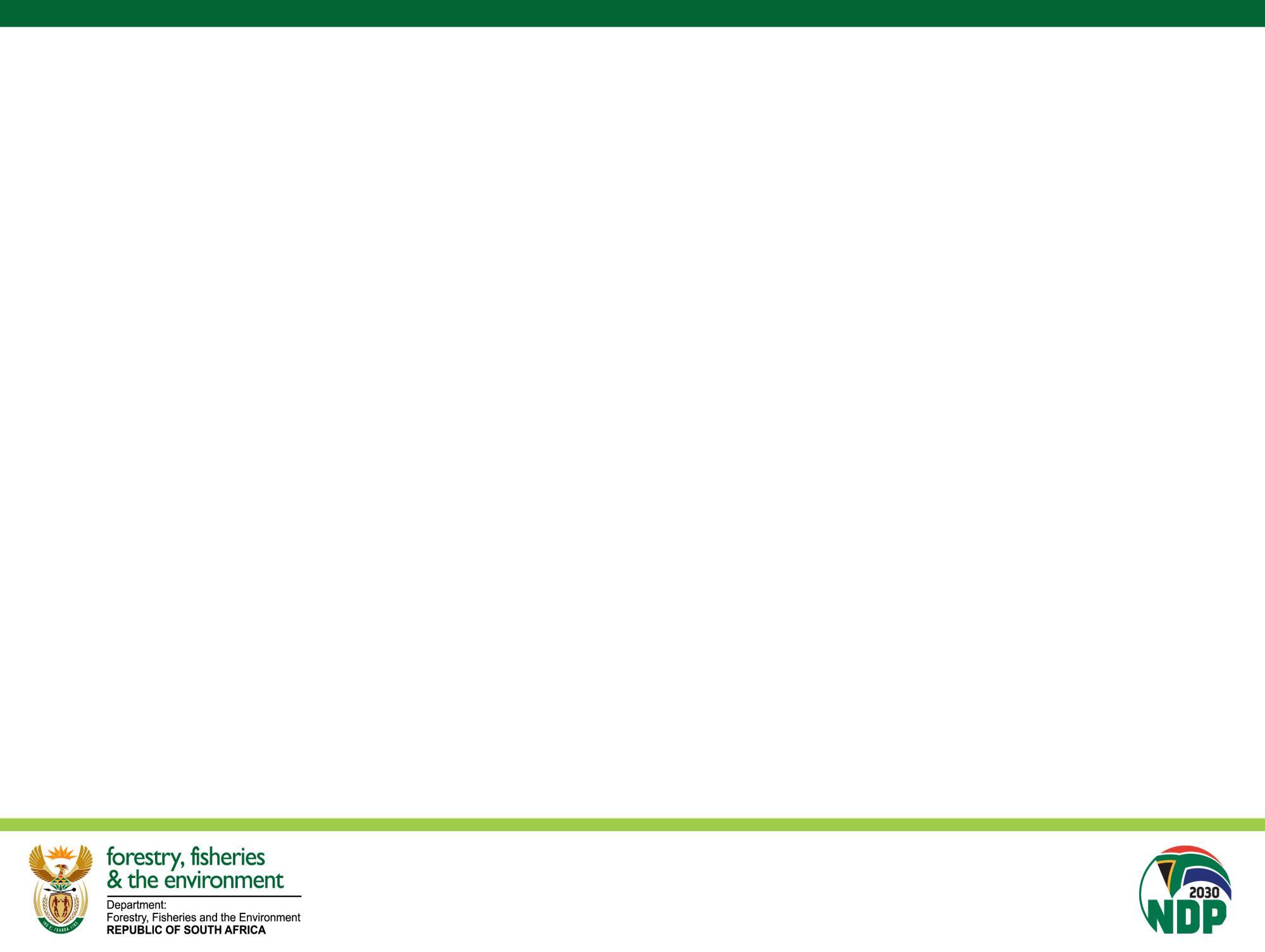 • Wildlife and Bio-prospecting economies – particular bias to rural areas ▪ Support to small scale as well developing farmers through seed funding for infrastructure development as well as required processing facilities – Game ranching, breeding, hunting outfitters, game meat processing equipment, Game donation/custodianship support ▪ Mass Cultivation of priority species – e.g medicinal plants –construction of bioprospecting , bio-trade processing facilities ▪ Securing Biodiversity through provision of conservation infrastructure and human capital ▪ Fencesand Conservation Management roads ▪ Staff and tourist accommodation ▪ Bulk reticulation (Water, electricity and sewage) ▪ Administration buildings and conference facilities ▪ Development of biodiversity corridors and nodes linked to SEZ, DDM and other local economic initiatives ▪ Environmental Monitors – Many accolades – UNEP: Champions of the Earth Award ▪ Youth Champions(1849) ▪ Support for Traditional Authorities (2455) BIODIVERSITY & CONSERVATION BRANCH PRIORITIES