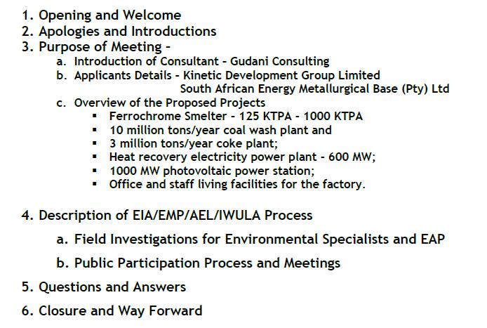 LICENSE APPLICATION PROCESS – THE PROPOSED FERROALLOYS PLANT (125Ktpa –