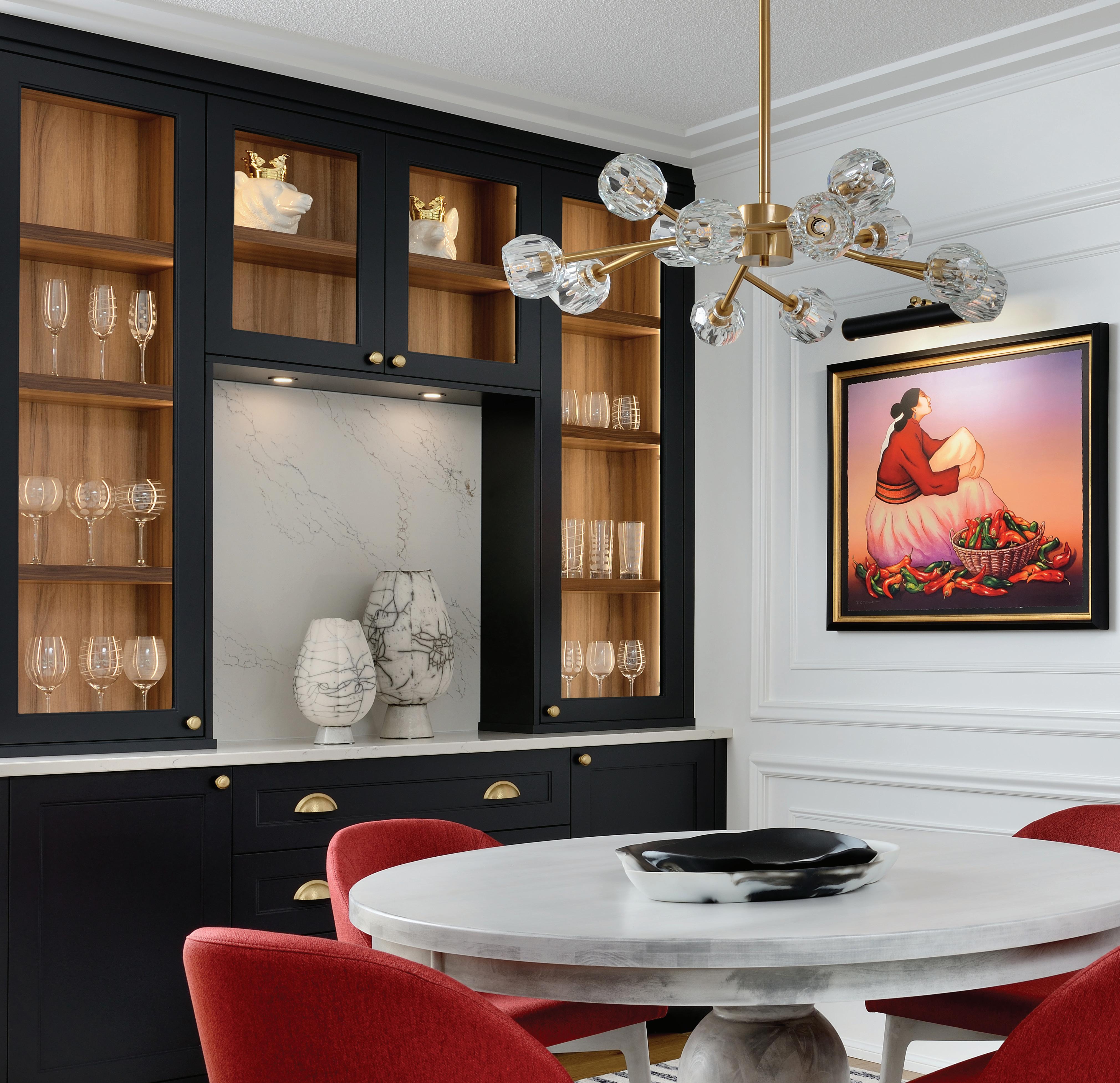 “I’m drawn to the transitional look where the home showcases traditional design with modern decor in earth tones and a splash of colour. Well-appointed furniture, chandeliers, rich hardwood and solid doors give an authentic and timeless appeal and sets the stage for elegance.”