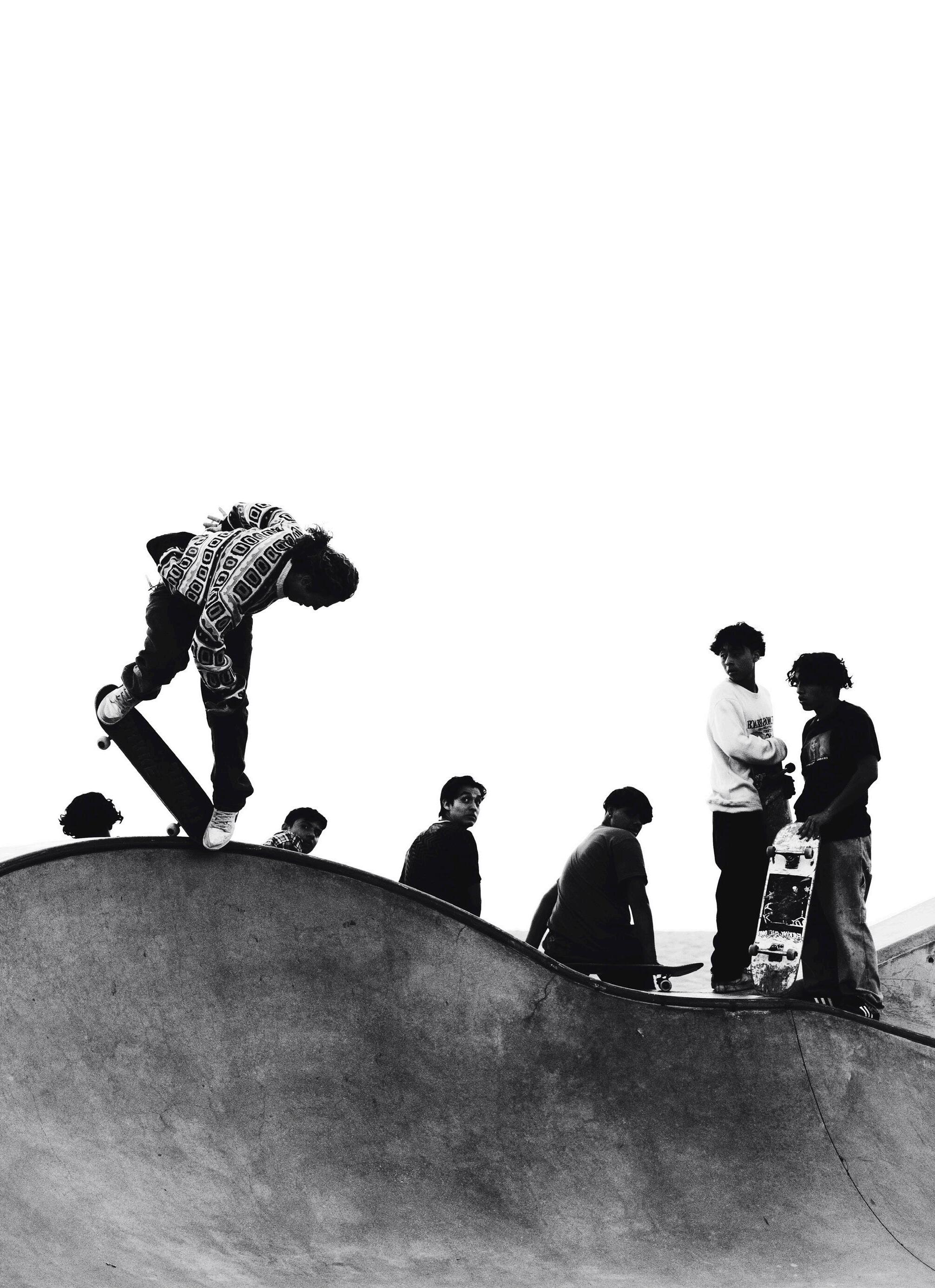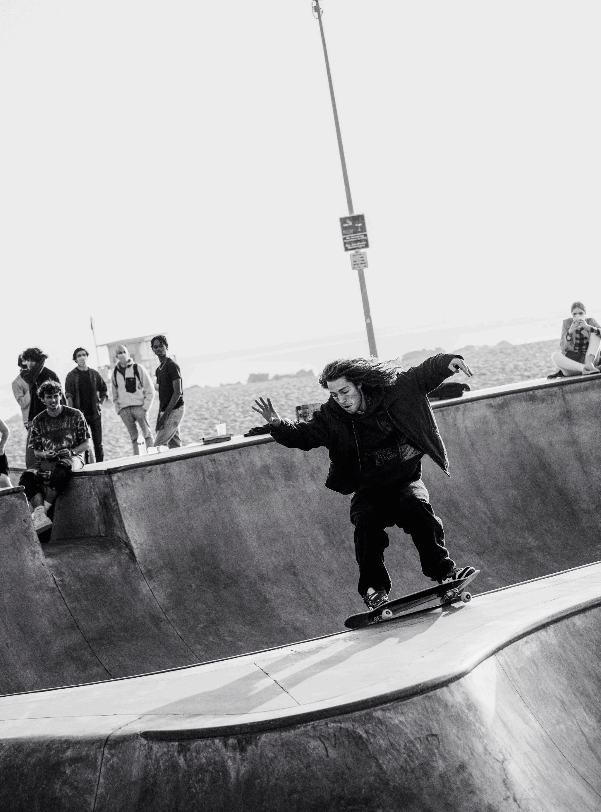 This collection is about details and timely captures of the essence of the surfers’ graceful dance with the waves and the skaters’ fearless maneuvers in the urban landscapes.