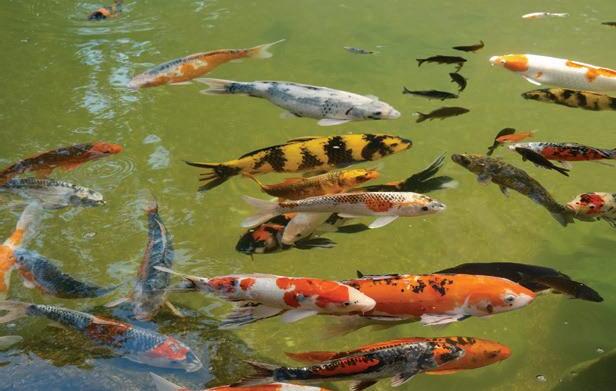 .• In turn, the fish produce waste that, along with other forms of natural debris, fall to the pond’s bottom