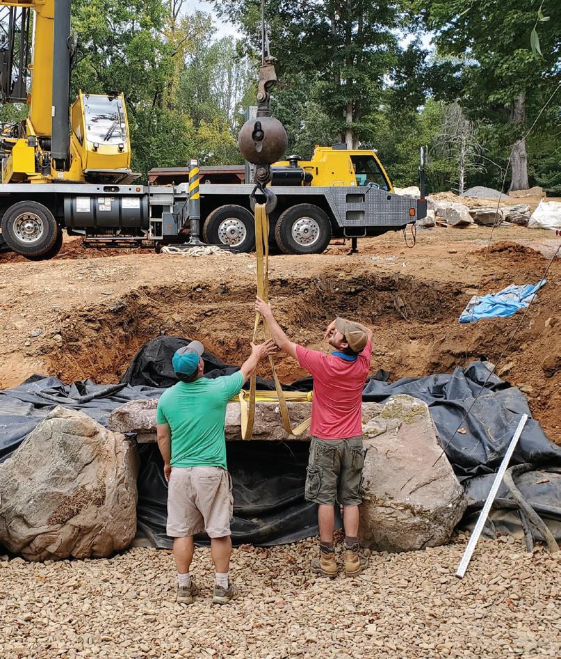 From wetland filtration systems to underground vault skimmer systems, we understand large scale construction. Placing massive stones weighing thousands of pounds is no problem for our trained staff. If you are looking to add unique attention to your business, we also specialize in commercial projects!