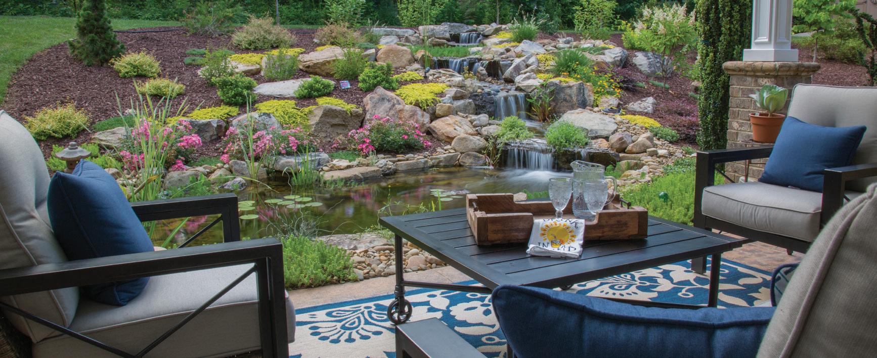 Ask about enhancing your pond with lighting, longer stream, and waterfall boost.