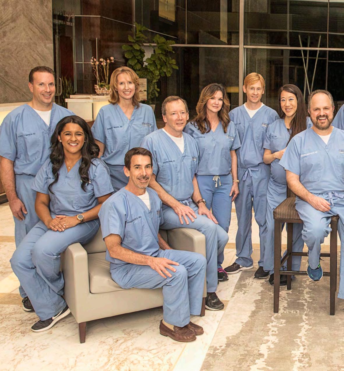 FRONT ROW FROM LEFT TO RIGHT: TODD AGNEW, O.D., ANITA JACOB, O.D., KIM WARREN, M.D., RON BARKE, M.D., MARTIN FABER, O.D., AMANDA HOELSCHER, O.D., LARRY FISH, M.D., KATE LEE, M.D., JEFFREY WHITMAN, M.D., FAISAL HAQ, M.D., ALFRED HUMPHREY, M.D., EDWARD HURST, M.D., TARA HARDIN, O.D., AMY HONG, M.D. NOT PHOTOGRAPHED: LESLIE PFEIFFER, MD