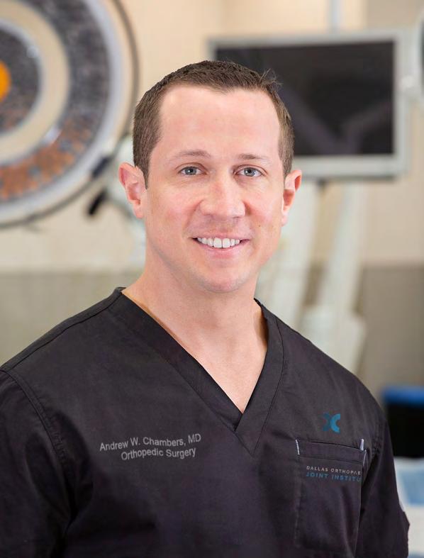 Dr. Chambers is a board certified Orthopaedic surgeon at Dallas Orthopaedic Joint Institute who specializes in joint replacement surgery. He received extensive training in joint replacement surgery during his fellowship at Harvard Medical School / Massachusetts General Hospital, which was voted as the top hospital in the United States. Dr. Chambers has implemented the techniques learned at Harvard Medical School into his own practice and offers minimally invasive total hip / knee replacement, partial knee replacement, revision surgery for malfunctioning, loose, and infected joint replacements, arthroscopic surgery of the hip and knee, and revision of failed and recalled metal-on-metal total hip replacement implants. Dr. Chambers focuses special attention on surgical techniques for rapid recovery after total joint replacement which allow his patients a more predictable and earlier return to home and an active lifestyle.