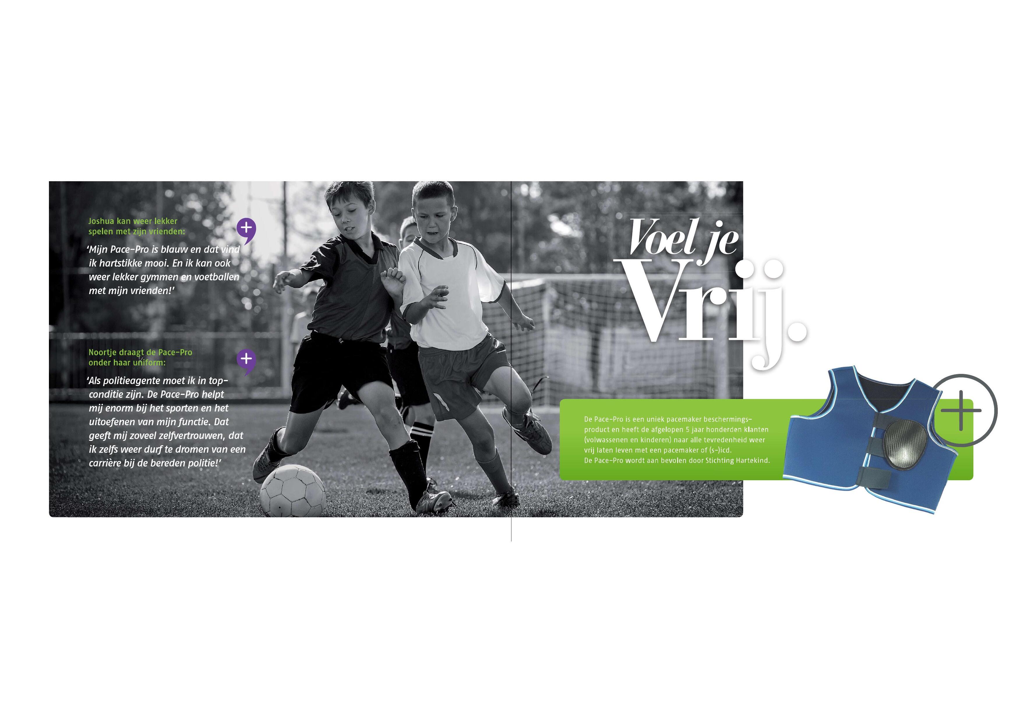 Komt er een bal of ander hard voorwerp tegen de pacemaker, dan doet dat zeer en kunnen de draadjes breken. Toen Duuk (9 jaar) in 2014 een pacemaker kreeg, wilde hij maar een ding en dat wasweer lekker kunnen voetballen met zijn vrienden. Zijn moeder werkte toe al alsvrijwilliger bij Stichting Hartekind en had daardoor de weg naar Livit snel gevonden om voor Duuk een Pace- Pro te laten aanmeten. Dit iseen op maat gemaakte beschermkap voor een pacemaker of ICD, waarmee je weer veilig en vrij kunt sporten en spellen.