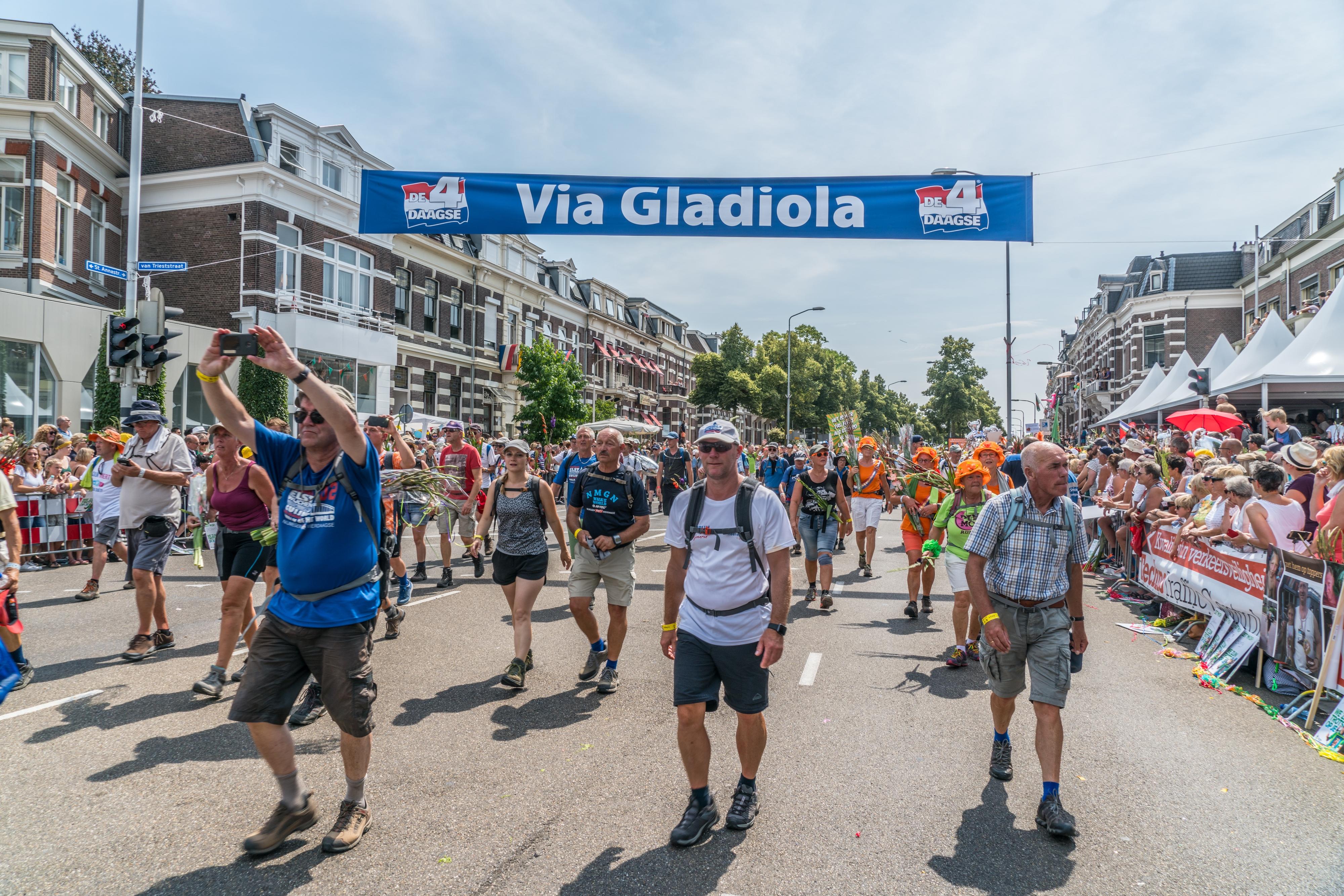'De intense solidariteit van de wandelaars, de uitgelaten feeststemming van het publiek en het mooie landschap onderweg is het afzien dubbel en dwars waard', stelt James 'De voldoening die je voelt als je aan het eind van de dag zit bij te komen met een biertje, doet alle ongemakken vergeten De sfeer onderweg is echt fantastisch De veteranen, roze woensdag en alle toeschouwersdie je een hart onder de riem steken, zoiets is met niks te vergelijken Volgensjaar wil ik er ook gewoon weer bij zijn