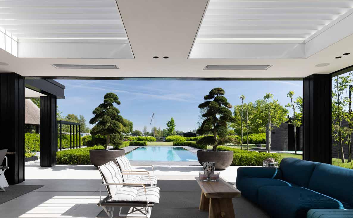 Luxe in alle bescheidenheid, de ultieme buitenruimte omlijst met een strakke architectuur. Het louvredak zorgt overdag voor licht en natuurlijke ventilatie. De architectuur, de functie en Livium zijn één geworden. Alles met elkaar in balans om het optimale uit alle seizoenen te halen.