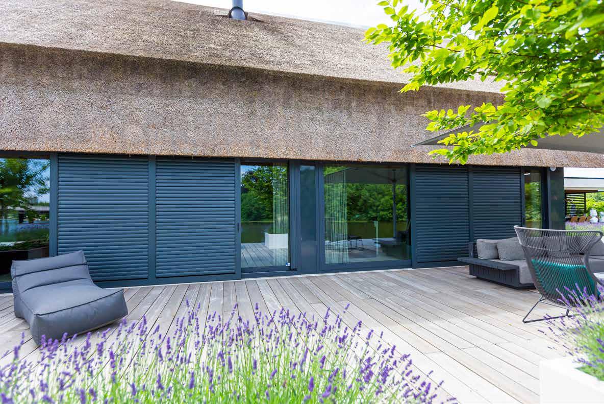 Shutterpanelen spelen met lichtinval. En ze verlengen de avond met hun beschutting tegen een zomerbries. Livium shutterpanelen zijn praktisch te plaatsen. Op zichzelf staand of gemonteerd in een schuifbaar frame.