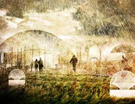Similarly, Ukubutha by Nicole Moyo is an imagined settlement that is completely centred around the use of biogas. The project is a se ries of varying sized domes, serving as community spaces, shops and dwellings. This works on a smaller level as well as being the fundamental part of the whole scheme. In each individual dwelling or shop, methane can be collected through rubbish or from human waste. The largest dome in the epicentre of the settlement collects methane and other biogases from the ground below, and produces energy on a larger scale for the whole village. In this particular con text, this settlement is used to mobilise slum communities and pro vide them with shelter and also to aid a cycle of growing plants and using the community’s waste to fertilise them (Crook, 2019). Although this small-scale infrastructure is extremely valuable in the context of mobilising a slum community, there are some limitations to this project. The project has not been specifically set on a landfill site, and potentially the waste of one household would not produce enough methane energy for itself. This is appropriate in this proposed project as its primary purpose is to house a community and assist with their existing livelihoods, not to take advantage of an energy source. The relationship between using a renewable energy source and creating a space that is reactive against climate change needs to be consid ered carefully; if the entire purpose of the project is to pioneer a new type of architecture that has been created to combat passiveness and educate people on climate change, it could be perceived has hypocritical or even counterproductive if it was not self-sufficient in terms of energy production and use (Bokalders, V. and Block, M.,2004).