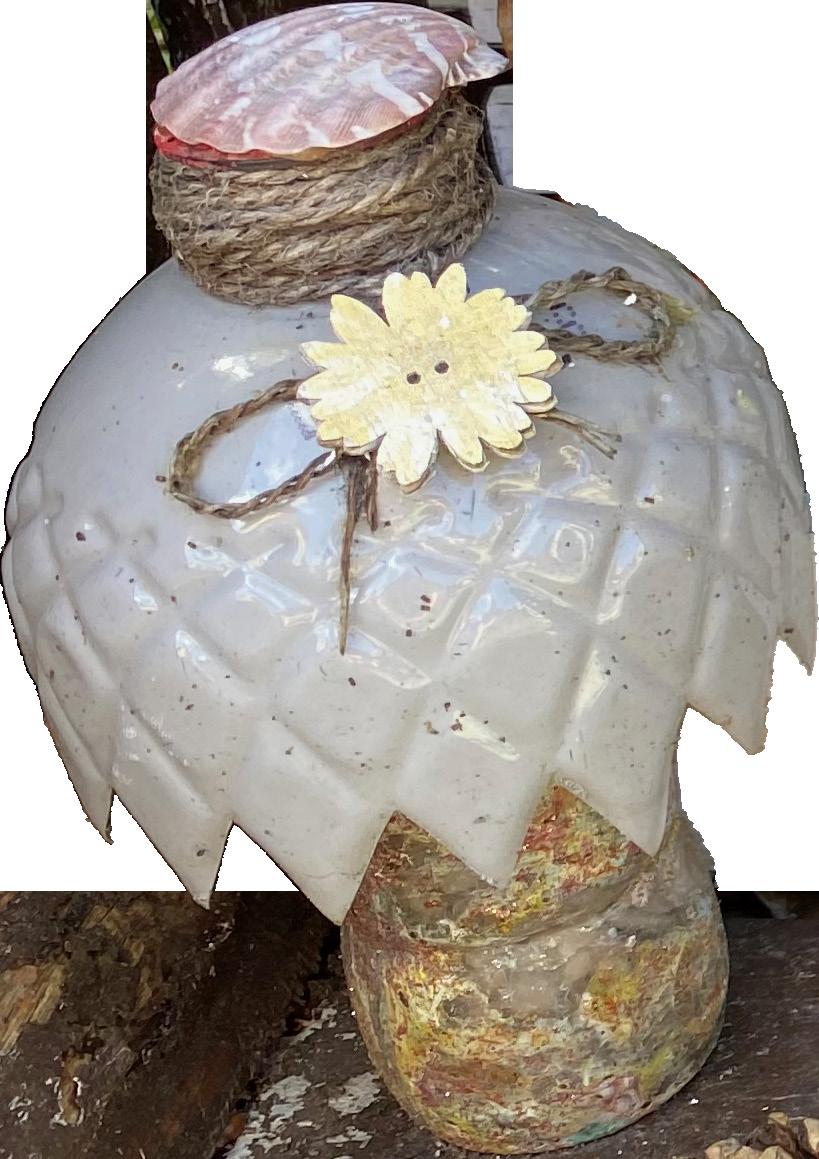 Inventive et créative, Maria transforme ce qu’elle récupère : des boîtes de conserves, des p’tis pots, des noix, des caisses, des vêtements, des pinceaux, des tchinisses... elle crée d’innombrables objets usuels ou décoratifs, et mêle l’utile à l’agréable. Ces objets, elle est ravie de pouvoir les partager ou les donner, qu’ils aient leur propre vie.
