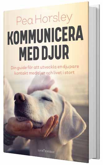 ling, praktiserar yoga, lägger orakelkort eller jobbar med kristaller. Och precis som vi kan kommunicera i dessa kanaler eller med människor omkring oss kan vi även föra en dialog med djur Djurområdet fascinerar mig. Och genom att kika på vilka böcker som snabbt rycks från hyllorna känns det som att det finns många fler än jag som vill förstå dju ren bättre. Livet enligt djuren och serien om Mästerkatten är exempel på populära böcker där djur meddelar sig. Nu, efter flera år av letande har vi äntligen hittat en bok om djurkommunikation som känns rätt som medlemsbok. I Pea Horsleys Kommunicera med djur får vi nämligen lära oss att utveckla vår telepatiska förmåga och bemästra dialogen med djur! Med facit i hand vägleder den vida uppskattade Pea oss steg för steg. Och tro inte att vi är begränsade till våra husdjur – nej, Pea bju der in alla levande ting till samtal; träden, insekterna, blommorna m.m.
