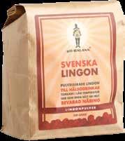 Lingonen plockas i det vilda och torkas varsamt för att bevara all den goda näringen. Lingon innehåller gott om vitaminer och mineraler och som blåbär även antioxidanten antocyanin men framför allt mycket cateniner, fenoliska syror samt tanniner. 100 gram pulver motsvarar ca 1 kilo färska bär. Innehåll: 500 g.Ord Ca pris: 299:-