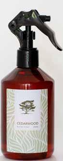 Cederträ i garderoben är ett klassiskt trick för att hålla kläder fräscha och väldoftande. Träslaget har en varm, träig och lätt kryddig doft som känns både rogivande och lyxig. Med den här doftsprayen sprider du enkelt doften i ditt hem. Njut av trätoner ackompanjerade av en blommig sötma som gör doften härligt fyllig. Pyscha försiktigt i t.ex. sovrum, vardagsrum och badrum. 300 ml doftspray.