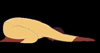 Rikta fötterna inåt så att stortårna möts och kom bakåt med höfterna till barnets position. Ta 10 andetag.