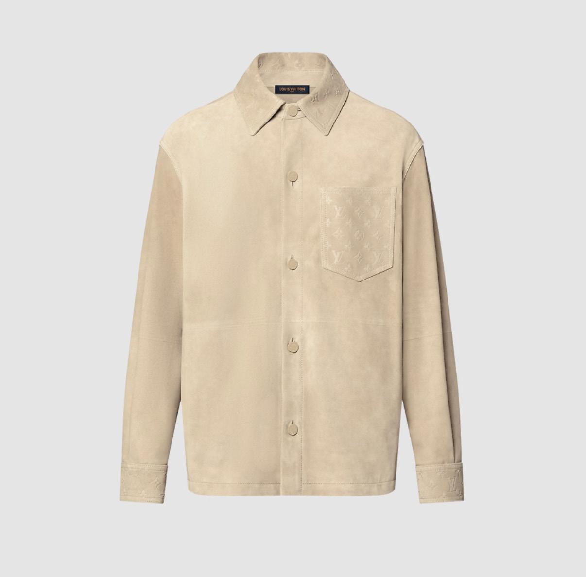 This versatile overshirt in light certified suede has a casual yet elegant mood. The relaxed fit is distinguished with an allover Monogram on the cuffs, collar and the left chest pocket, while engraved staples on the sleeves add a discreet signature. The refined sandy tones complement the desert-inspired pieces of this collection. Available for purchase at Hudson Yards and Chelsea boutiques or online.