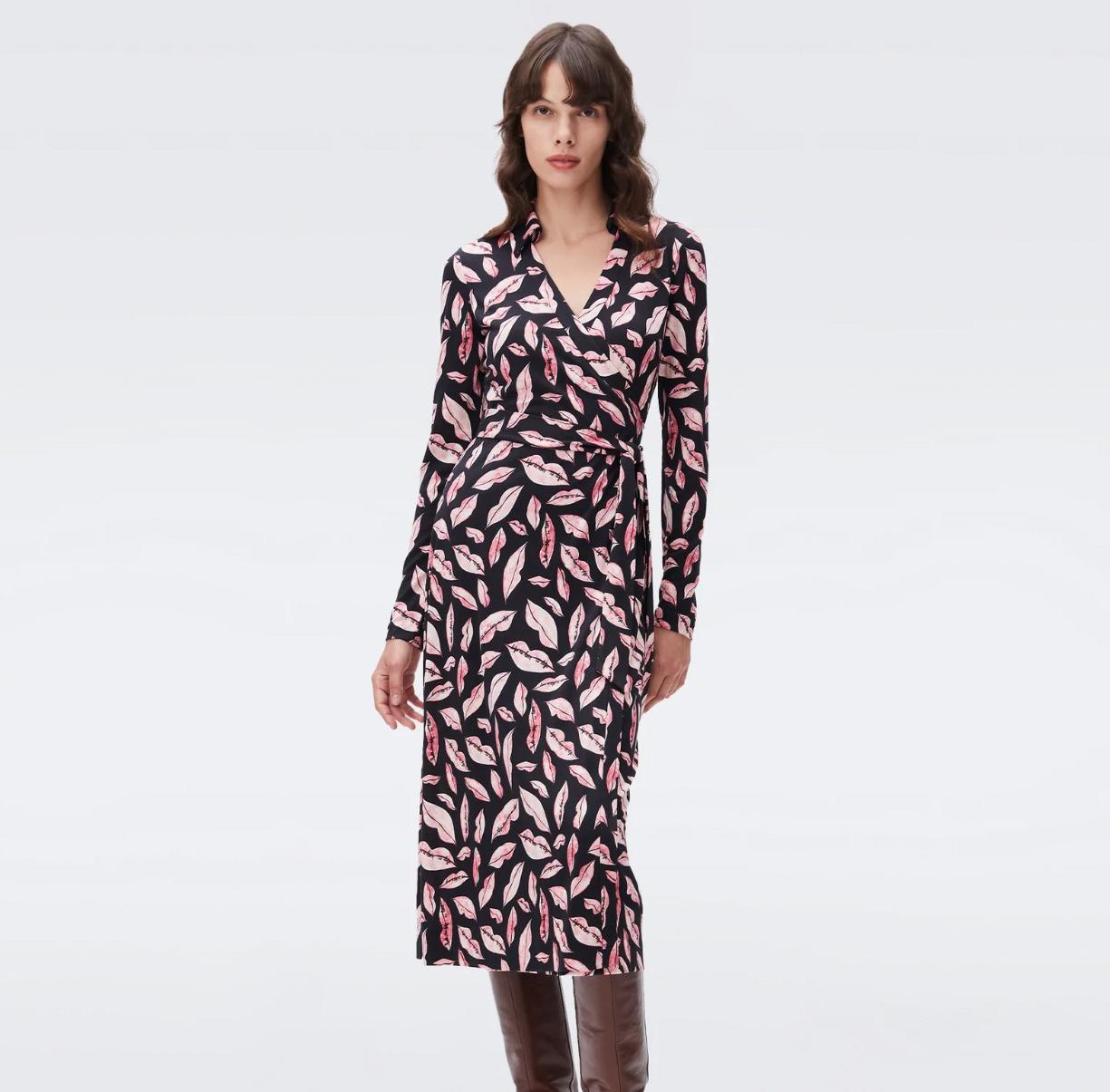 Gift your loved one the timeless Abigail Wrap Dress from DVF. Updated in a midi length and with long sleeves, the Abigail is one of their classic styles. Cut in their signature silk jersey, this dress has a V-neck collar and a true wrap closure. Pairs perfectly with both heeled boots and sneakers.