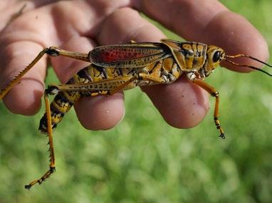 I am talking about the eastern lubber grasshopper Romalea microptera. Other common names include the thumper (Georgia), devil’s horse (Louisianna), and giant locust (Mississippi). For us, it’s the Florida lubber.