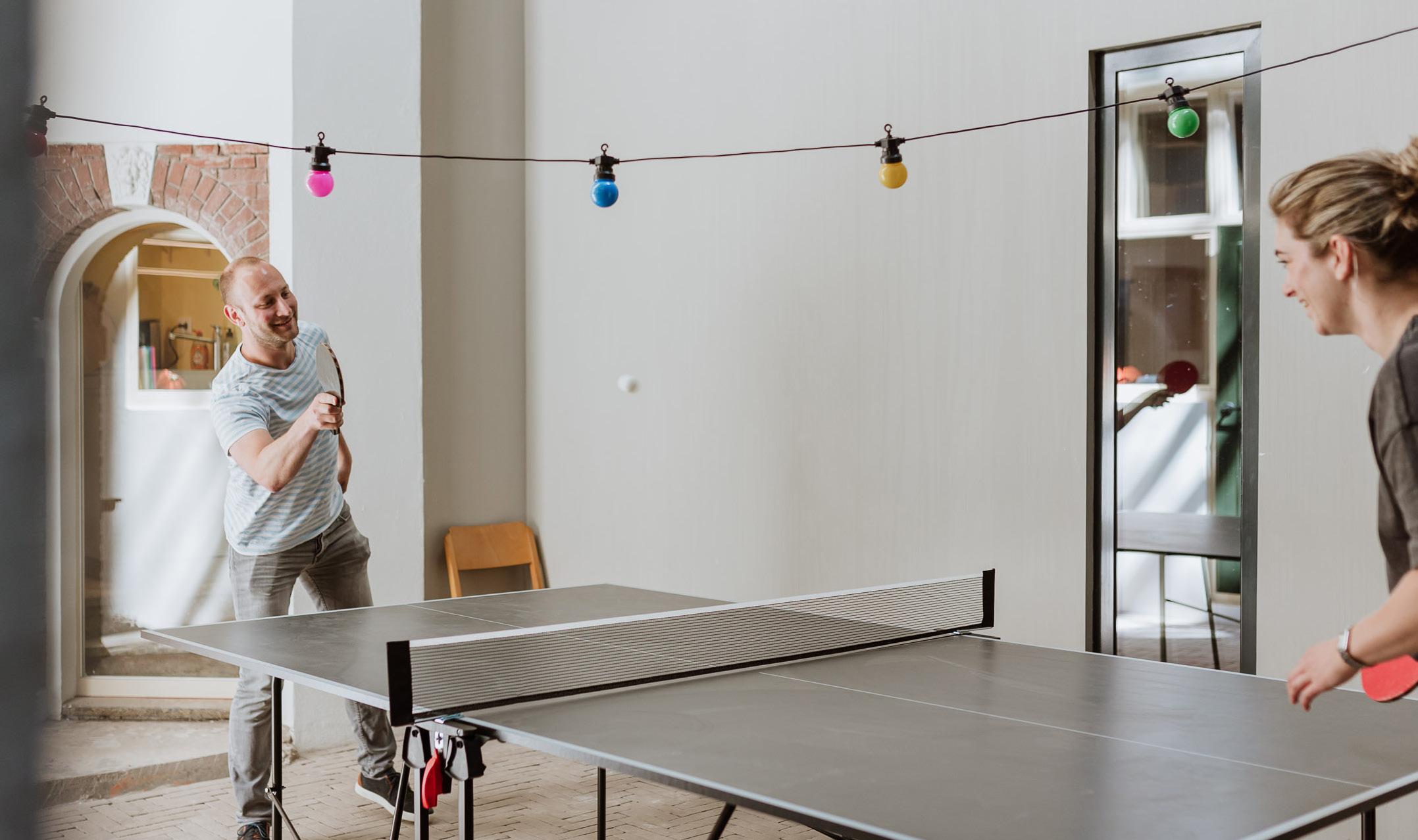 De begane grond bestaat niet alleen uit De Huiskamer, maar ook uit verschillende kantoren voor creatieve, duurzame ondernemers die iets toevoegen aan het community-gevoel van Jonas’. “Wat ik hoop, is dat er een soort micro-economie ontstaat binnen dit gebouw”, zegt Jana. “Stel dat er bijvoorbeeld een fitness-instructeur in Jonas’ woont, dan zou diegene via onze community-app iedere zaterdagochtend een Bootcamp op Het Plein kunnen organiseren. Dit concept is heel erg toegankelijk voor initiatieven uit de buurt, dus ik wil de bewoners ook echt uitnodigen om daar gebruik van te maken en met eigen ideeën te komen.”