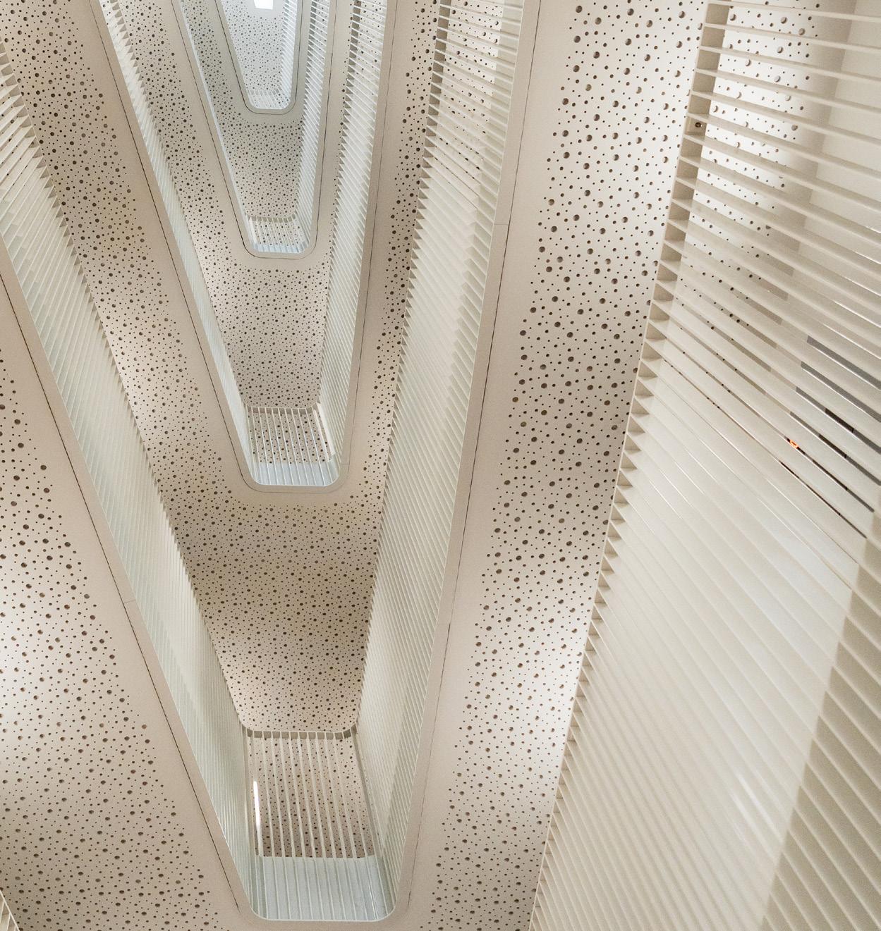 parkeergarage de lift, stapt uit op je eigen verdieping en loopt over je galerij naar huis. Vaak ben je nauwelijks bezig met je omgeving. In dit gebouw wilden we allerlei punten maken waar je elkaar kan ontmoeten, en zo’n Canyon draagt daaraan bij.”