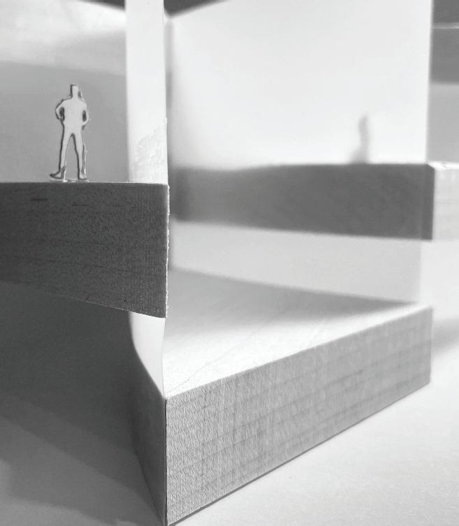 Using bookbinding as a design operation resulted in a building with a central ‘thread’ of circulatory spaces that then stitch together living units on both sides of the core, a material and programmatic interdependency. The thread loops in the middle to create a large gathering space that in the second time becomes a space for collective mourning and communing with the dead, a crossing of the River Styx.