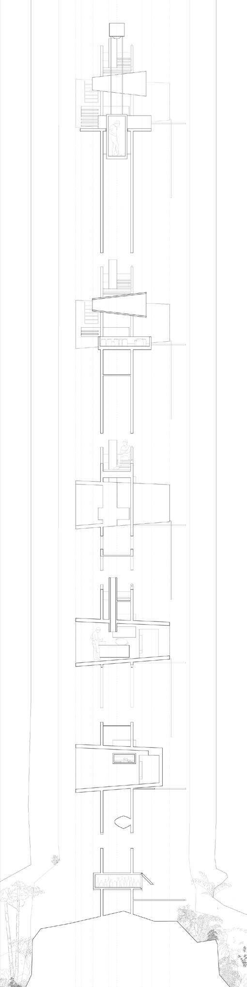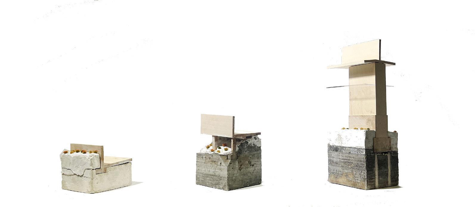 We speculated on how its building foundation could be adapted for a solid hillside, exposed rock, or a marsh and did extensive research on the soil types of those three conditions. The drawings lay out the different types of soil in each respective condition and the models represent ways of adaptation while staying true to Huma Klabin’s experience of being embedded in the ground and offering views like a periscope out from the earth.