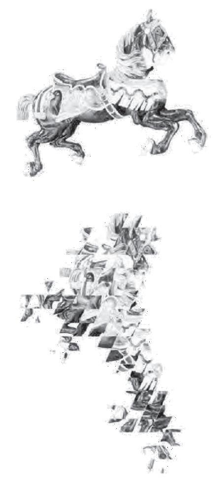 Right: A still-life of the Central Park Carousel, manipulated to express movement.