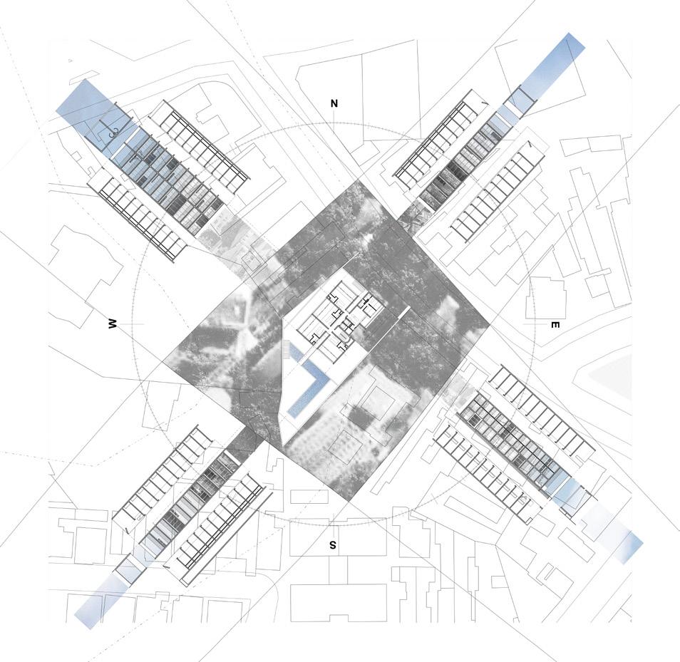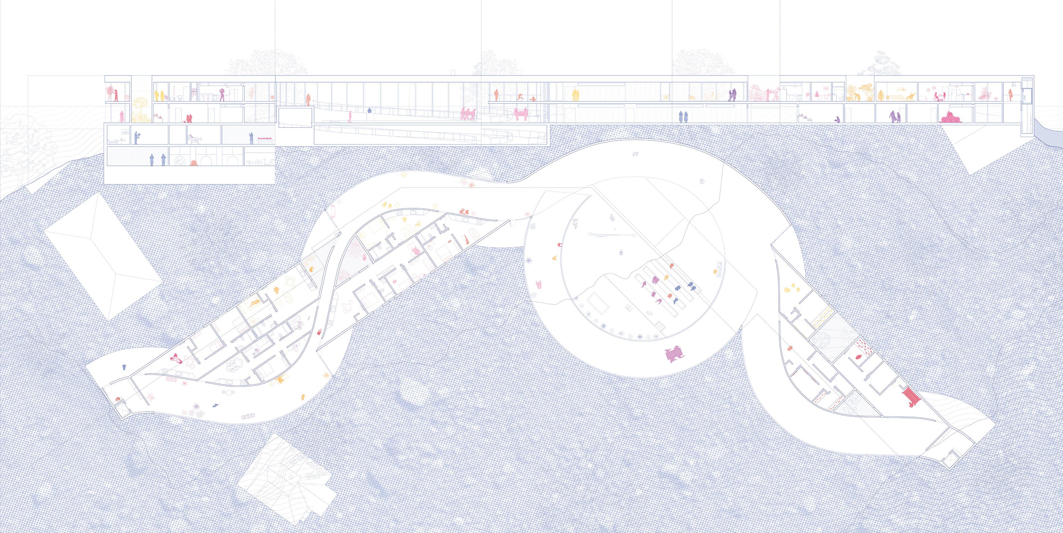 By allowing spaces of human nurture and spaces of plant life surround each other, the project provides pockets of stillness; spaces in between time where garden and library alike serve as rooms in a larger enfilade. Zooming out to the neighborhood scale, the same one way one might stop by the “forest” to read after visiting the library or the communal kitchen after visiting the “crop rows”, community members can stop by the project after picking up their kids from school, or come by to cook with groceries from next door.