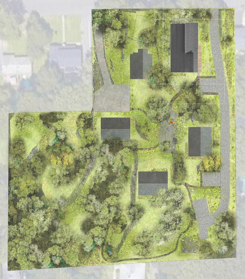 Our foundational values in approaching this project are dignity and respect. We believe strongly that although the parameters of this project necessitate a shared house, each family should have a right to privacy and comfort to a degree that allows a separation from their work and home. We’ve approached this proposal with a “hub and spoke” method where each family has a private wing with individual living spaces and differing views, joined together by a larger communal kitchen and lounge.
