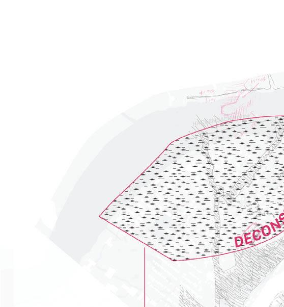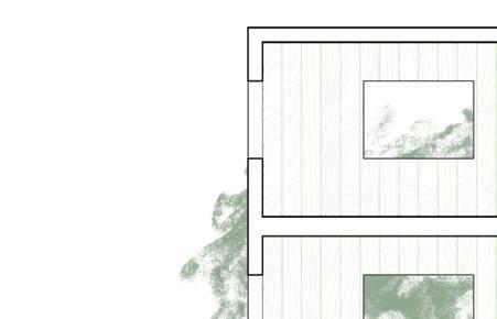 Eventually, we hope to relocate the inhabitants on the western half of our site into climate-resilient housing built into the marshes on the east, first using trees from the forest and then using the deconstructed homes, turning the site into a material forest both raw and repurposed. At the same time, as buildings are deconstructed and hollowed out, we propose planting new trees and reeds that can continue this cycle.