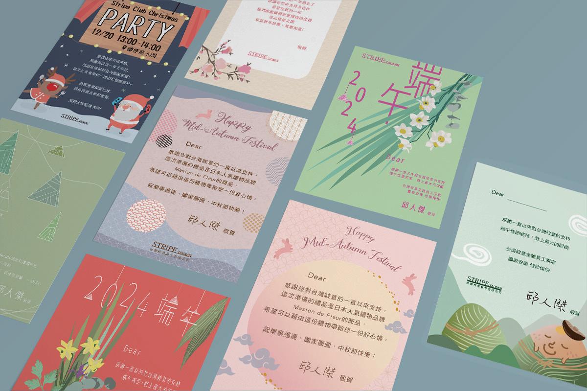 逢年過節會有贈禮需求,賀卡及賀禮的視覺統整任務會交到兩位視覺設計手中。