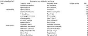 Species Rain Meadow lower zone Forb species Grass species Forb species Grass Species Forb Species Prairie Meadow-Tall Mesic Meadow Grass species Forb species Prairie Meadow-Short Andropogon gyrans Elymus hystrix Elymus villosus Elymus virginicus Festuca rubra Sorghastrum nutans Andropogon virginicus Asclepias exaltata Eupatorium fistu- Helianthus maxi- Heliopsis helianthoides Silene nivea Silphium laciniatum Bouteloua gracilis Chasmanthium Eragrostis spectabilis Festuca glauca Sporobolus heterolepis Asclepias verticillata Lespedeza capitata Andropogon gerarLobelia siphilitica - Festuca rubra Packera plattensis Solidago rigida Symphyotrichum laeve Elymus canadensis