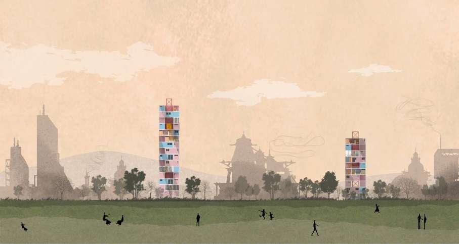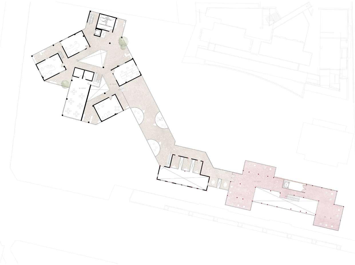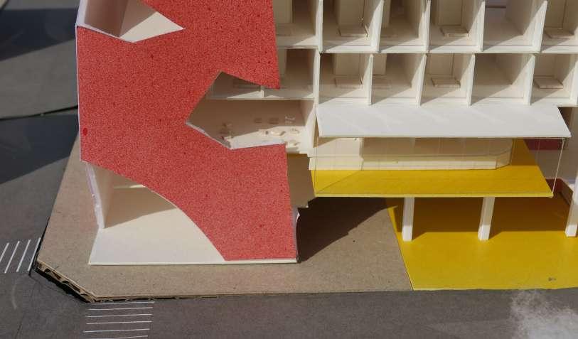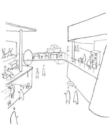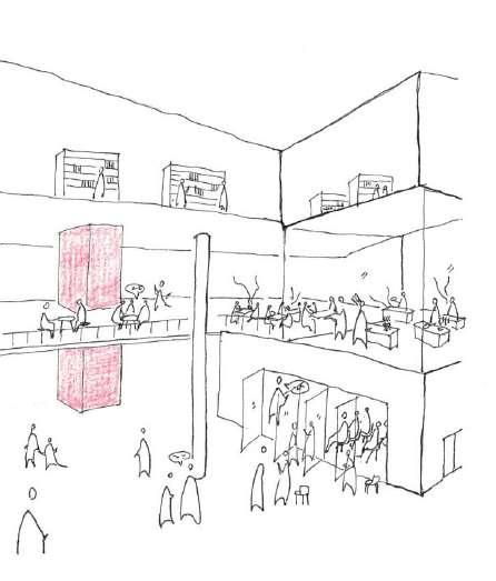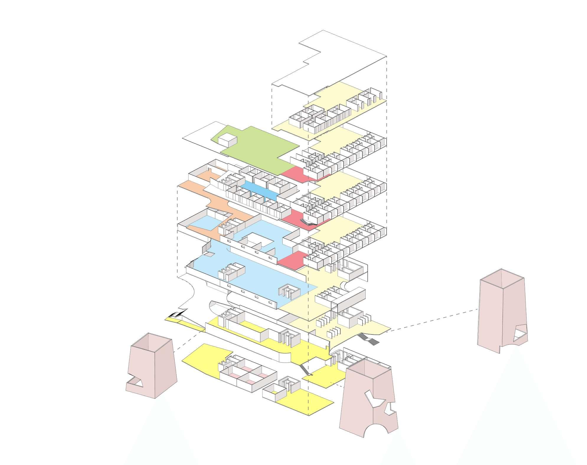 To deal with the old dormitories, I reserve part of the old structures, leaving maximized void space, increase interactions between different layers.Those dormitories become public spaces such as restaurant, exhibition space, and rental conference room.