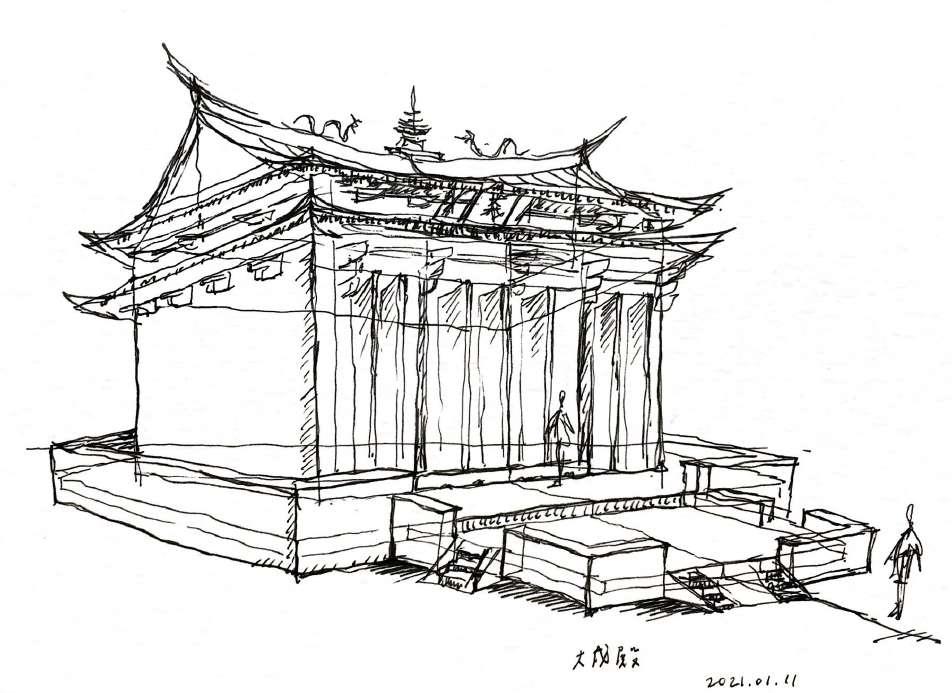 Various types of semi-open spaces were incorporated into my design, and these areas were designed to respond to the temples.