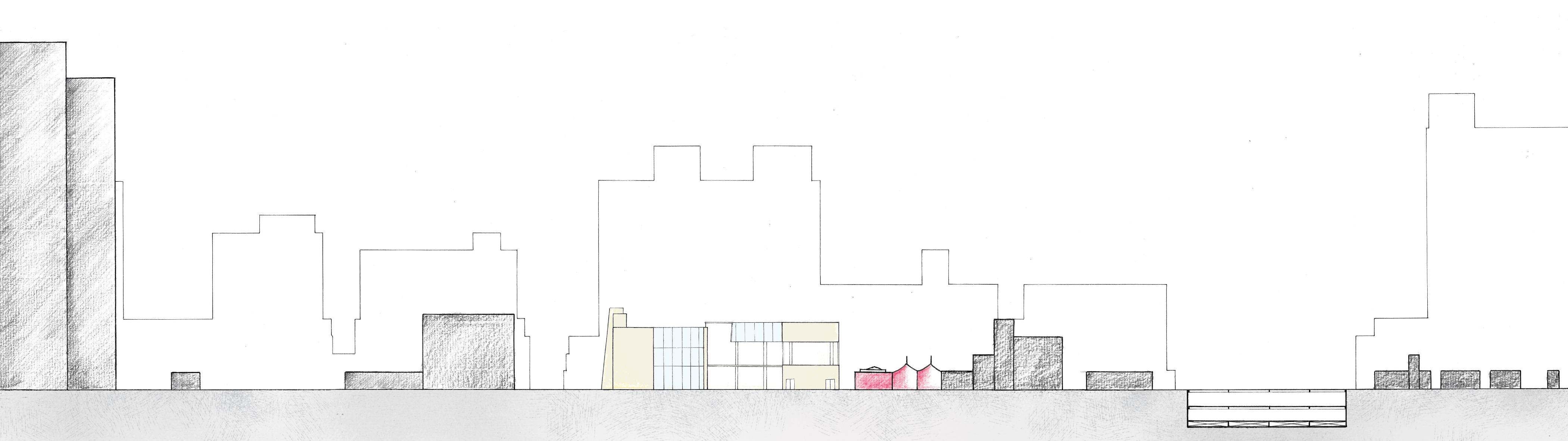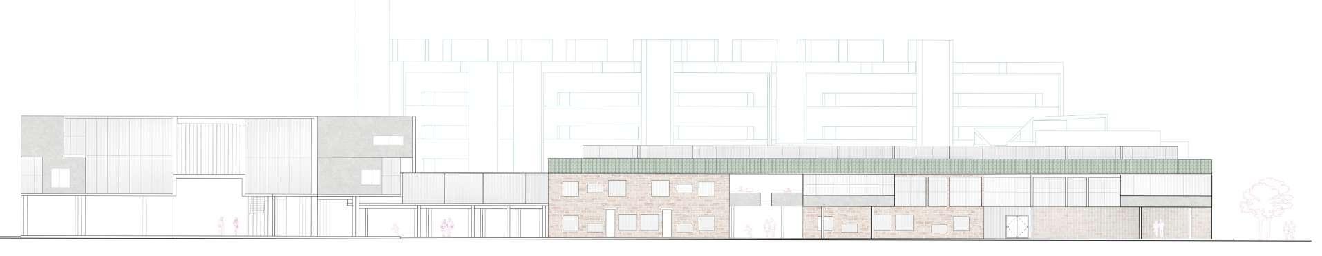 office unit old structure campus old site BOUNDARY INTERFACE office unit new structure city new site GROUND FLOOR PLAN existing wall B A' A B' new wall concrete traditional roof tiles brick wall SOUTH ELEVATION 0M 5M 10M