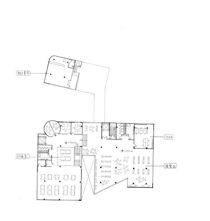 From the section, the main offices which is modularized can't be seen, I try to use split-level to distinguish other discussion spaces, to avoid mutual interferences.