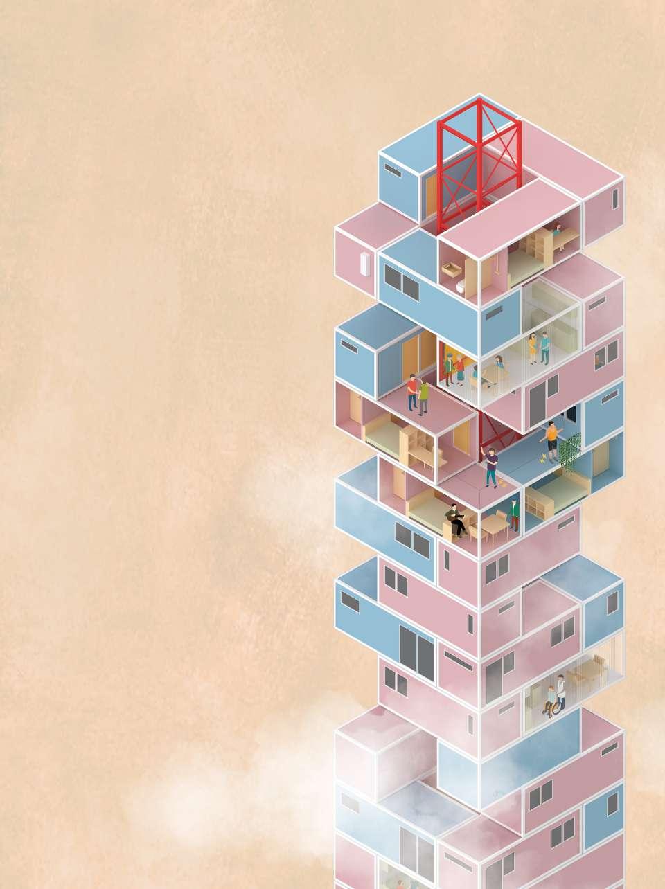 求也隨之變動。政府要求一人一室的空間需求,在一般家庭中難以實現,大多數人只 能選擇價格高昂的防疫旅館作為短期住所,在未來是否有更加具有彈性的空間選擇?