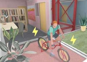 Previously, cycling activities were typically located on the ground floor. In an effort to create a new type of cycling experience, I have relocated the cycling activities to the upper levels. The cycling flows can circle horizontally and lead up to the manufacturing space, which allows citizens to view the surrounding urban sights.