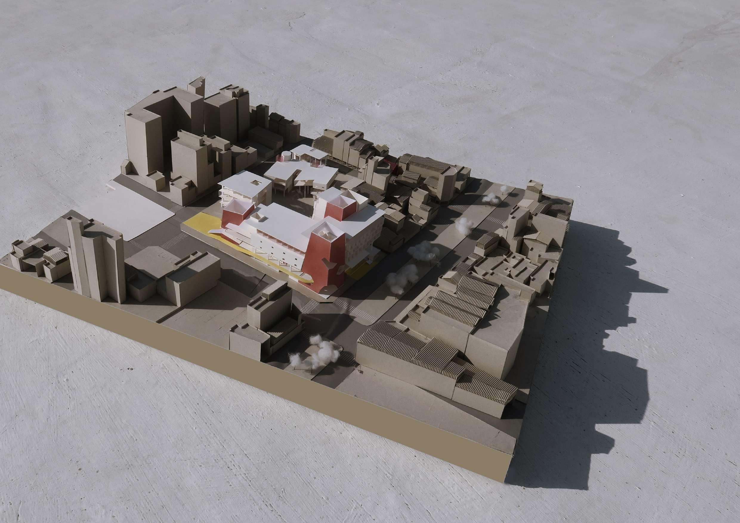 My strategy is to disperse volumes in different ways, analyzing the pros and cons of different layouts. Attempt to extend the sense of scale of the existing alleys as an entrance of the Symbiotic Neighborhood Center. The flow can easily shuttle around the outside of the building.