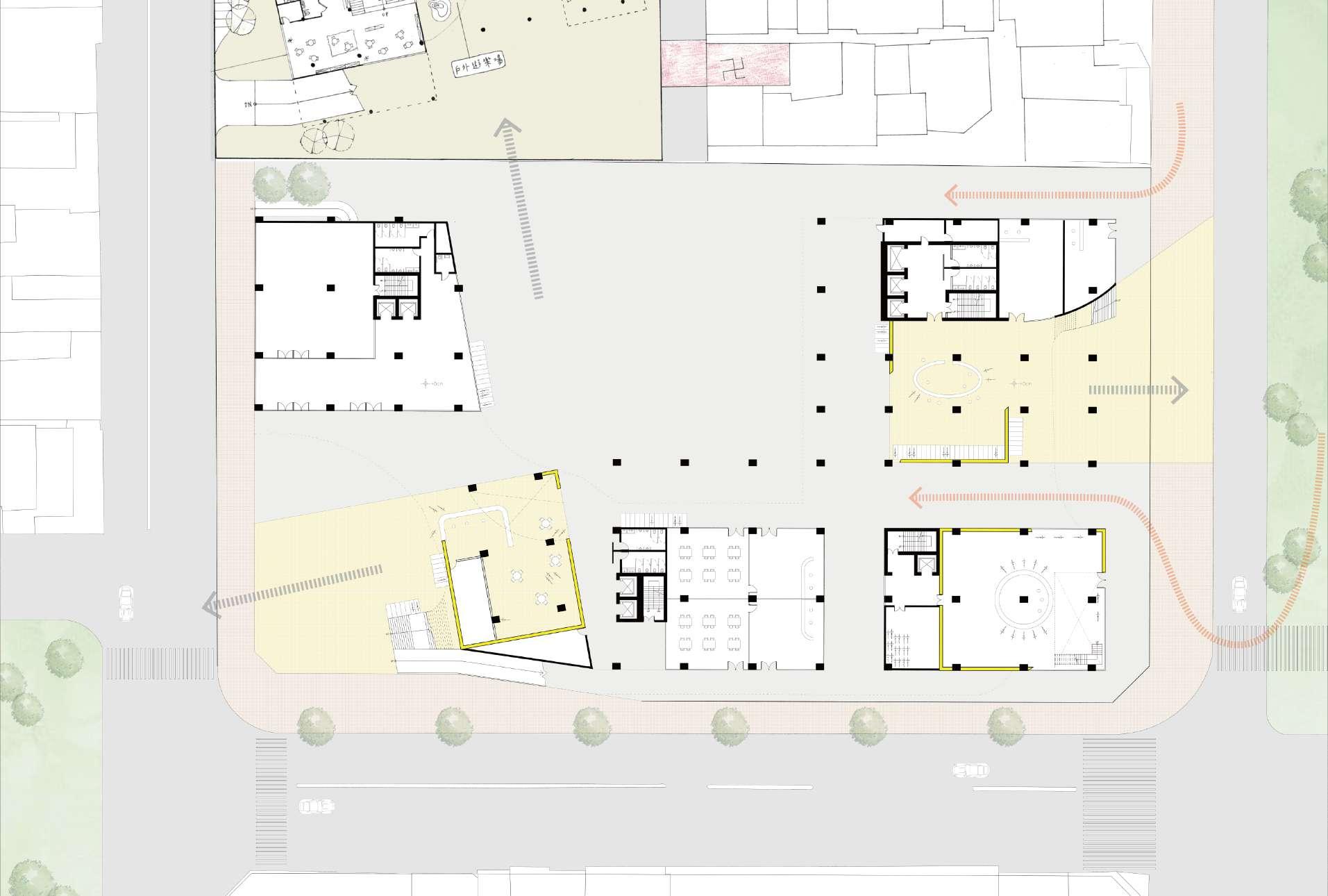The site is next to the previous project, but the difference is that adjacent to the commercial axis, as an important commercial node the city, which provide citizens, office workers and even tourists opportunities for interaction.