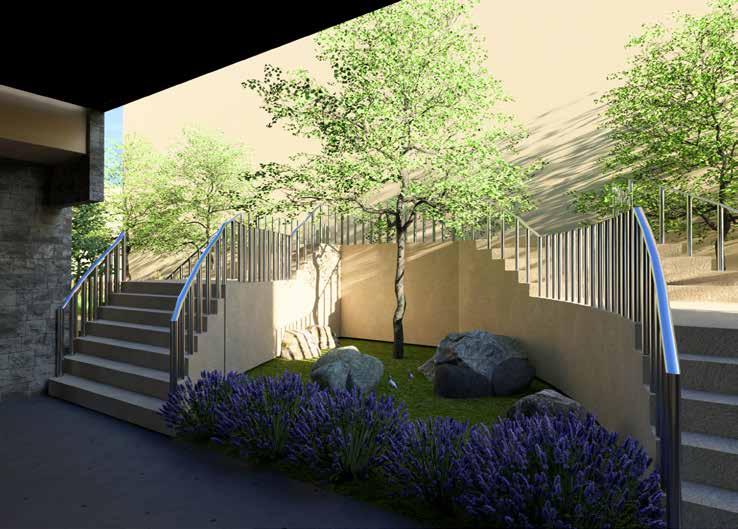 an render of the new garden in-between the buildings