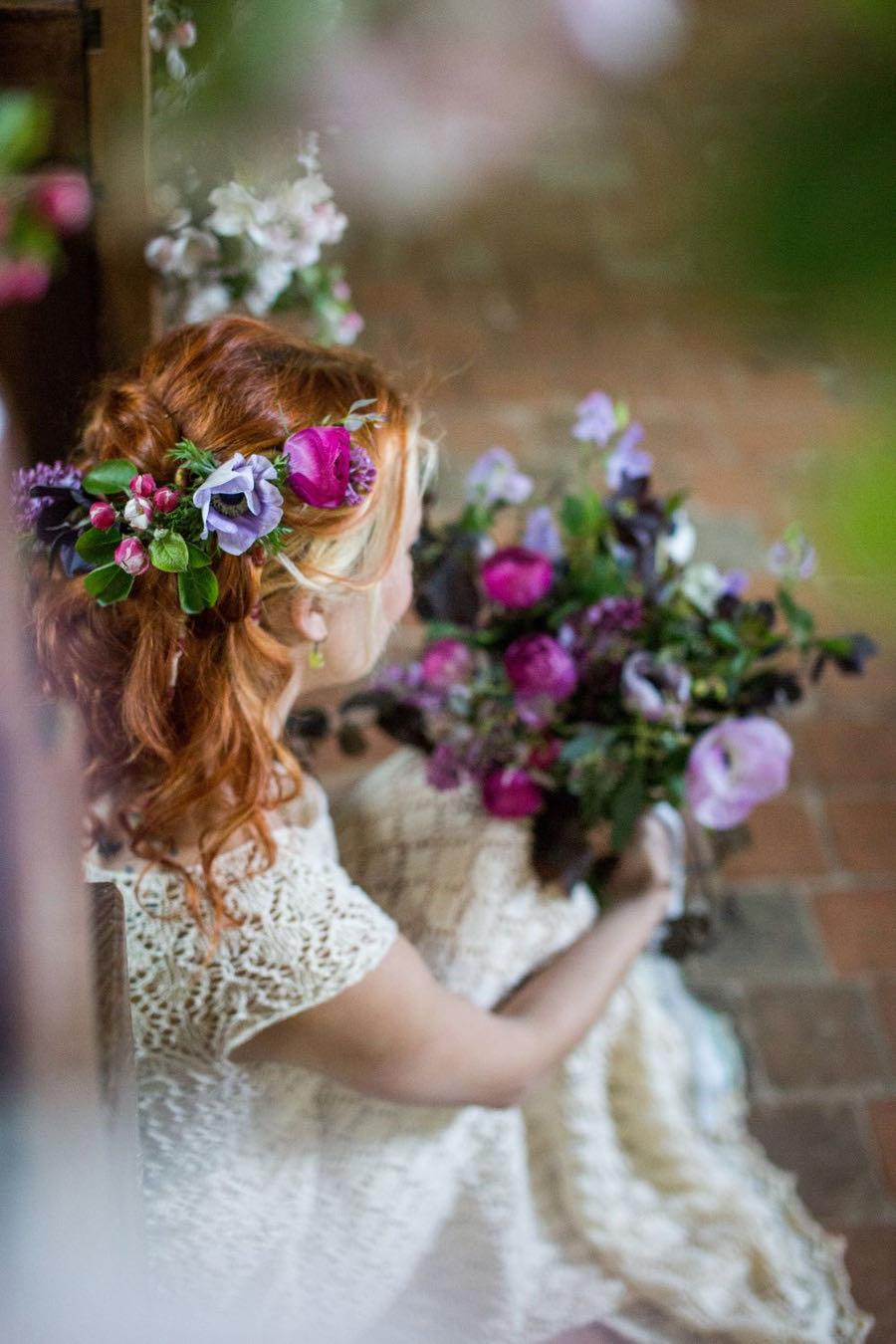 Think about the size of your arrangement: ask for a tall arrangement for the registrar’s table or something low and sprawling for the tables at the reception.
